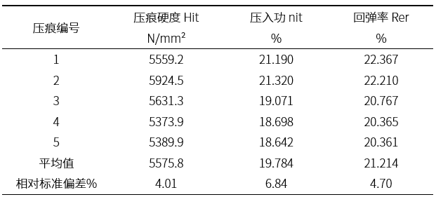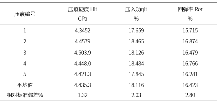 表1.金属表面压痕硬度测试结果