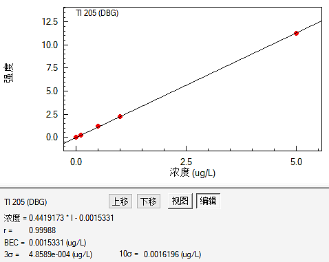 图2 ICP-MS铊(Tl)标准曲线(0~5 μg/L)