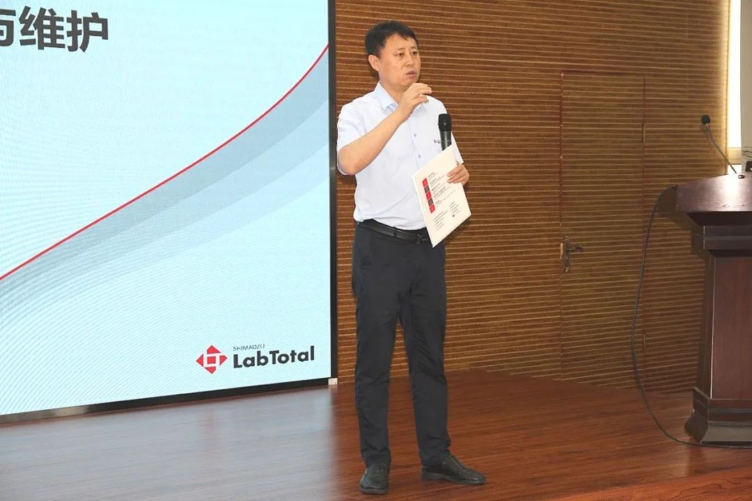 在技术交流会上,梁争胜经理向客户详细介绍了岛津LabTotal事业部的售后服务体系。首先梁经理回顾了岛津公司的发展历史和经营理念,让客户对岛津公司有了更全面的了解。随后,详细介绍了LabTotal事业部的售后业务内容,包括5S售后体系、实验室整体解决方案、签约保修服务、定期维护保养、综合应用支持以及专业教育培训等多元化服务内容,使客户深刻认识到岛津售后不仅涵盖传统的安装调试和维修,更能够提供全方位的增值服务。