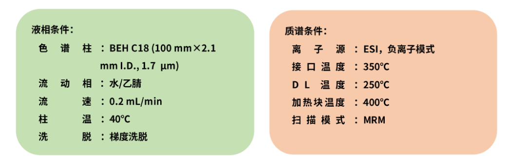 水样经HLB固相萃取柱进行富集净化后,乙腈/水(V:V=3:2)定容,上机。