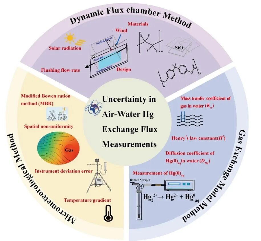 本文系统梳理了当前水-气汞交换通量三大主流方法——动态通量箱(DFC)、气体交换模型与微气象法的内在不确定度。未来研究亟需在下述方向深入: