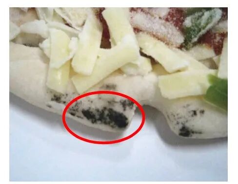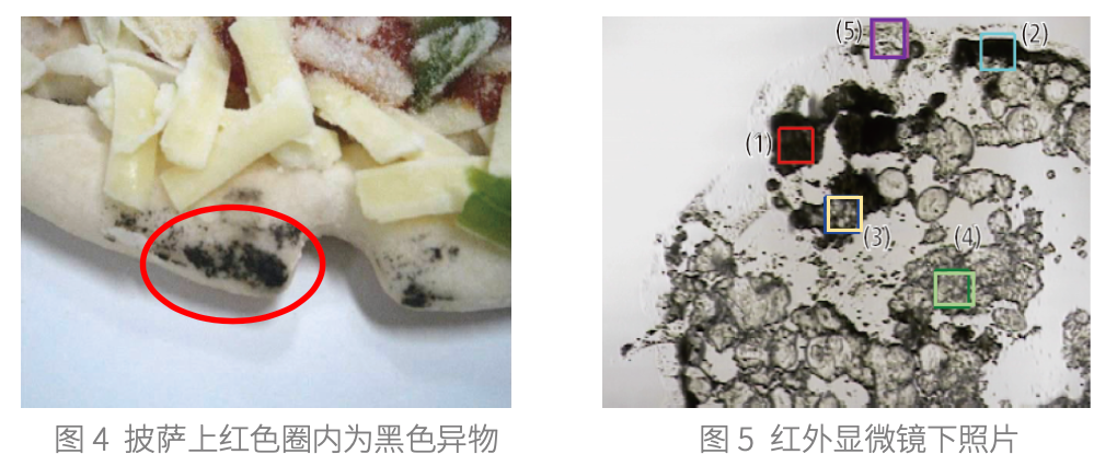 图4 披萨上红色圈内为黑色异物