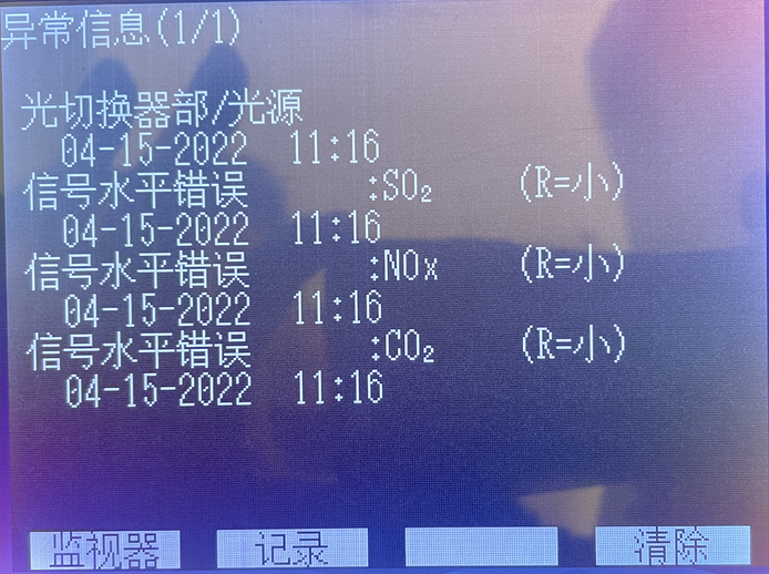 环境在线仪器运行工况较差,因环境不好等原因,导致切光频率降低,出现这种报警:
