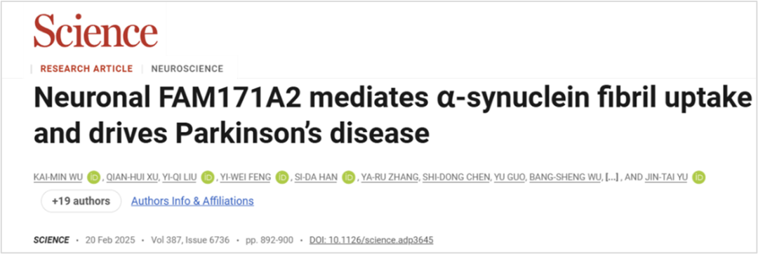 [2].Wu KM, Xu QH, Liu YQ, et al. Neuronal FAM171A2 mediates α-synuclein fibril uptake and drives Parkinson's disease. Science. 2025 Feb 21;387(6736):892-900.