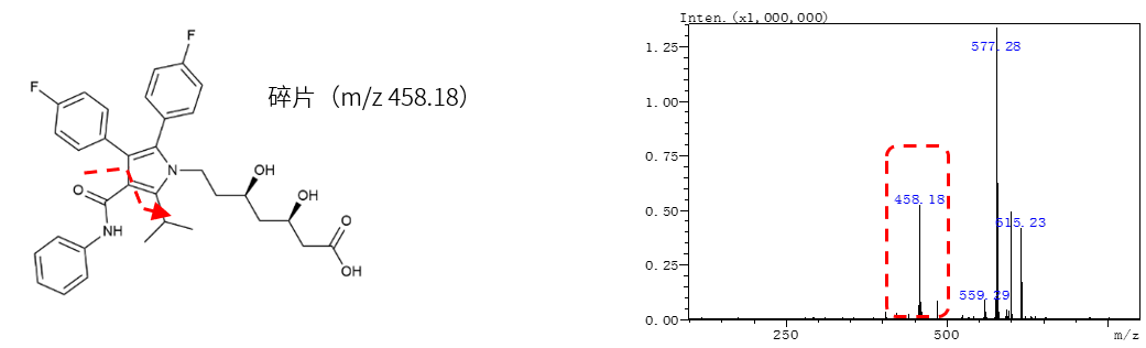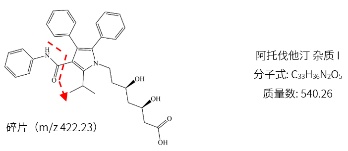 该技术成功应用于复杂基质中杂质结构推断,以阿托伐他汀多种杂质碎裂解析为例,源内CID技术可提供以下数据支持: