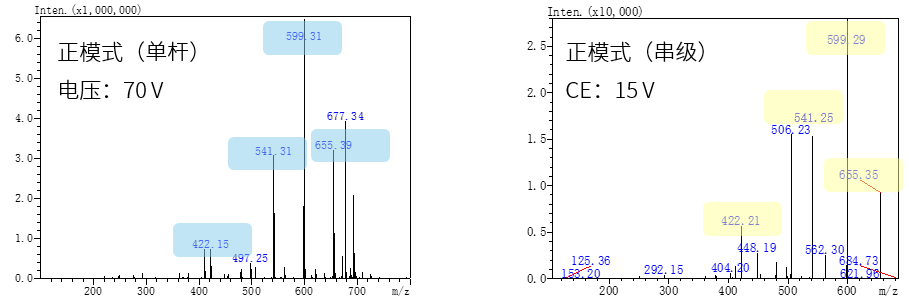 ● 在单四极杆平台上实现类MS/MS的碎片解析能力,大幅降低结构鉴定设备门槛