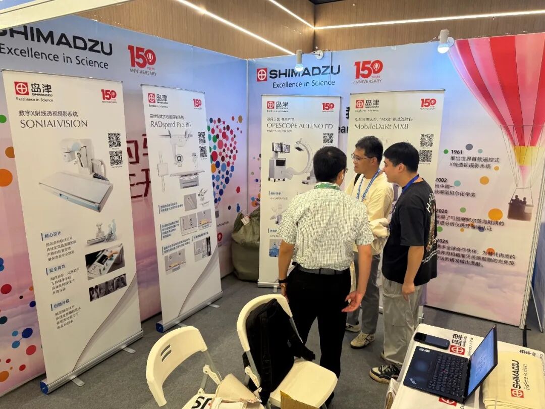 大会期间,岛津展台的影像科解决方案交流区备受关注。来自全国各地的参会嘉宾纷纷驻足,围绕日常工作中遇到的实际问题,与岛津团队展开深入交流,现场气氛十分热烈。岛津秉持 “服务临床、贴近科室” 的理念,聚焦基层医疗机构、三甲医院及急诊外科等多样化场景,推出 “一机多能、高效检查、快速响应” 三大解决方案。