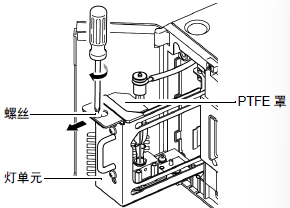 拧松灯单元上的螺丝(1颗),将PTFE罩往前拉。