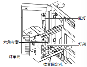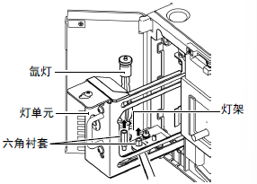 用附属的开口扳手取下固定氙灯于仪器的六角衬套(两颗)。