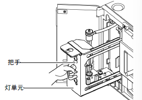如右图所示,抓住灯单元的把手,把灯单元从仪器里取出。